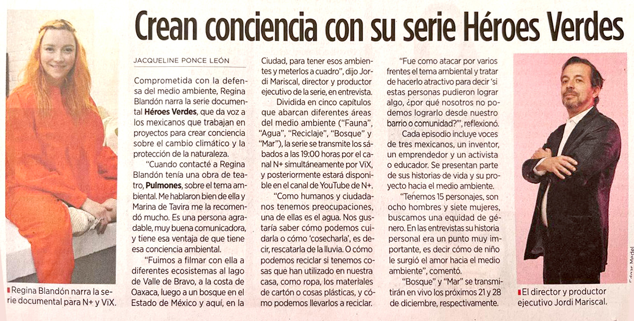 Artículo Reforma Proyección del documental de Agua en la Uma Sembrando un futuro sostenible Crean conciencia con su serie Héroes Verdes Trailer Reciclaje en N+ Trailer Agua en N+ Trailer Fauna en N+